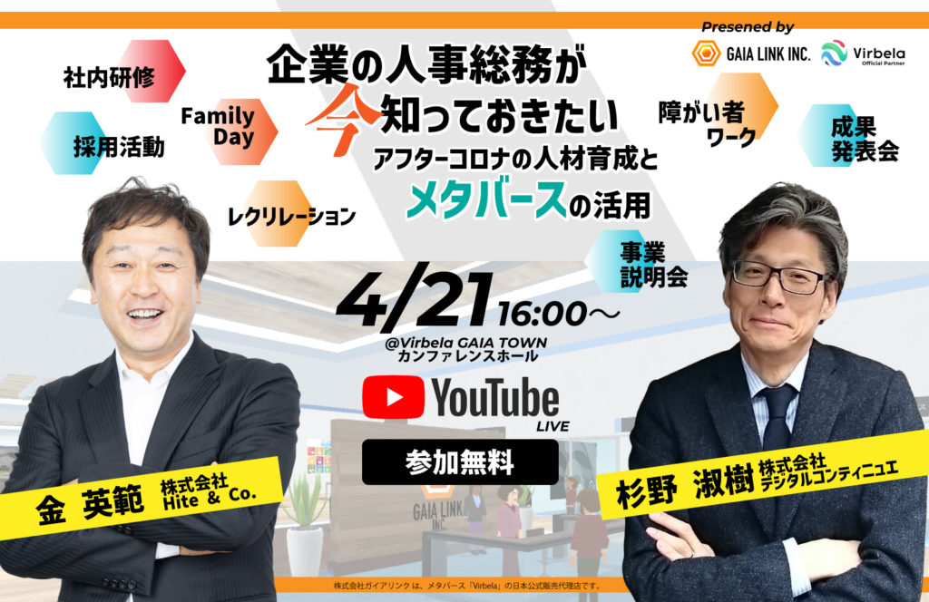 4/21(木)開催予定のVirbela・GAIALINKイベントにて、弊社代表の杉野が登壇。